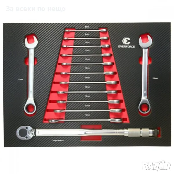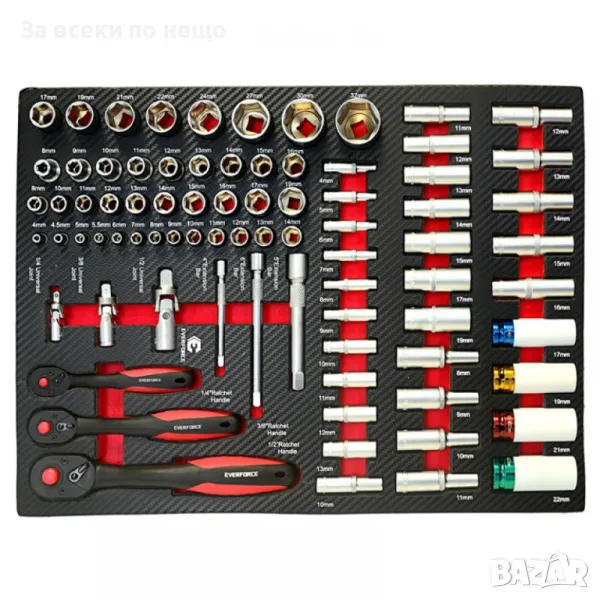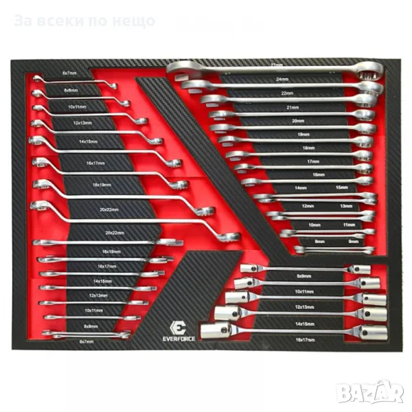 Професионален шкаф с метален плот, със 7 чекмеджета – пълни с инструменти EverForce