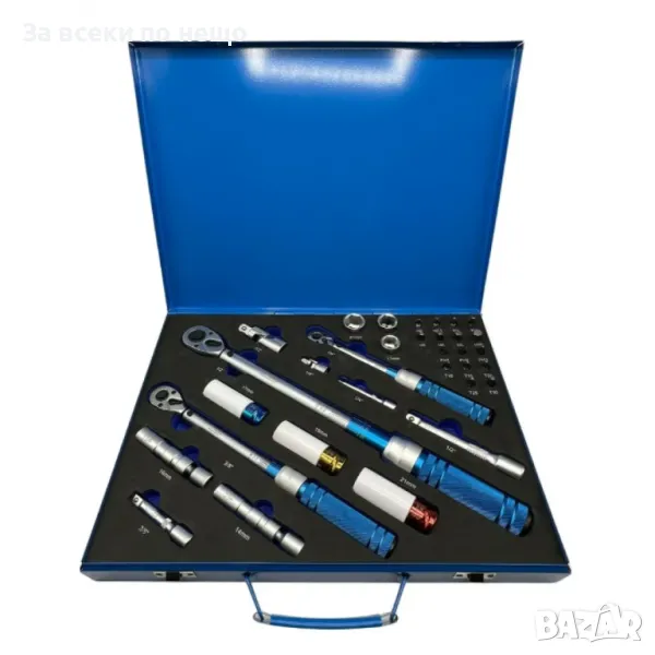 Професионален комплект динамометрични ключове 32 части 14'', 38'' и 12'' със заключване на дръжката