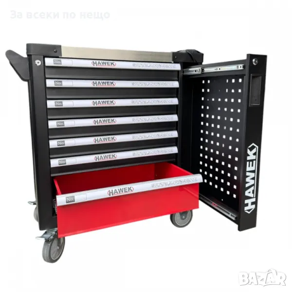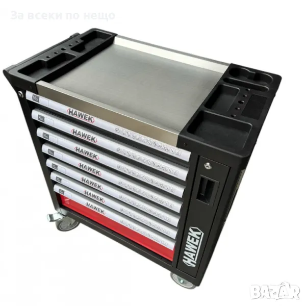 Празен шкаф за инструменти със 7 чекмеджета, метален плот и отделение за закачане на инструменти HAWEK
