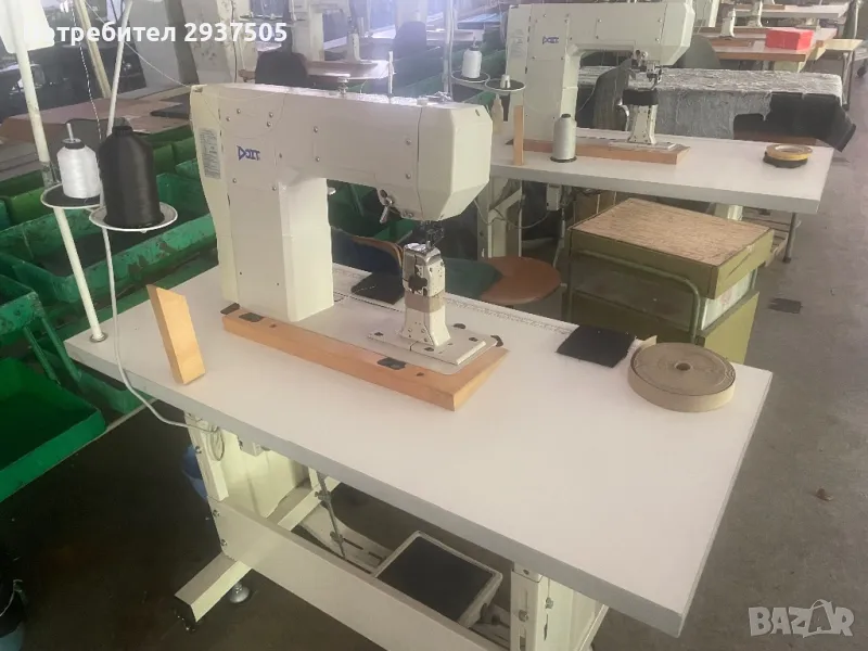 Бутилкови едноиглови машини Doit. троен транспорт, монофазни, инверторни мотори с електронно управление, позициониране на бодната, автоматично рязане на конеца, заячки в начало и край на тегела .Прозведени 2015 г.Дължина на бодната 6 мм. Дебелина на материала до 6 мм.Състояние, перфектно. 6 броя.