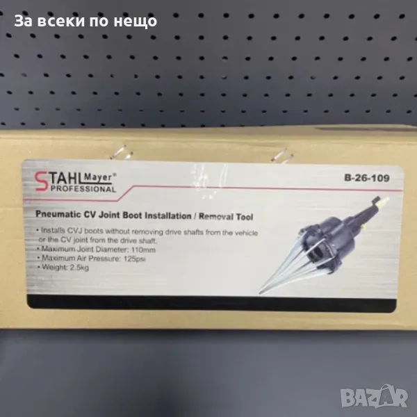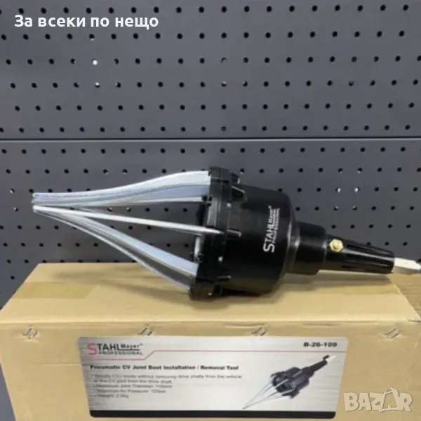 Използва се за монтиране на еластични маншони на шарнири без премахване на задвижващите валове от автомобила или карета от задвижващия вал. Използва се с въздушен компресор. Подходящ за гумени маншони. Инстументът не е подходящ за PVC маншони.