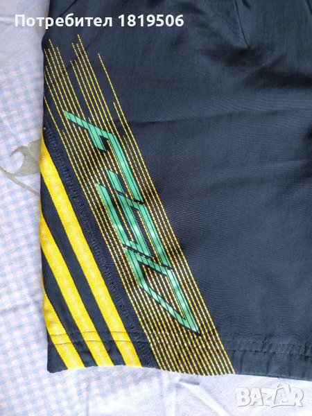 -панталонките са от много лека изкуствена материя и мрежеста подплата,черни с жълт кант, имат два вътрешни джоба, с ластика на кръста и стягащи връзки, размери: дължина -37см; обиколка на кръста -60см, обиколкка на ханша-94см
