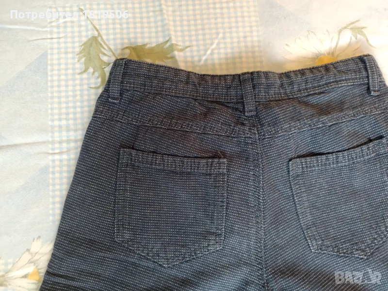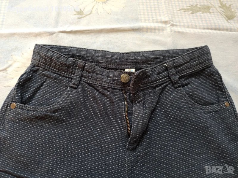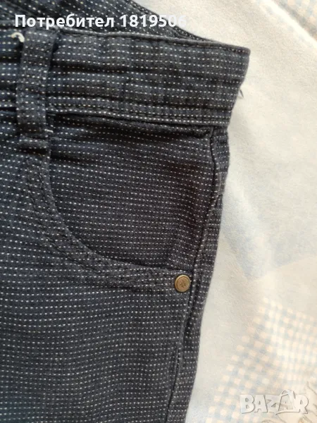 -панталончето от памучен плат, тъмно син на малки бели точки ,на колана има ластика и копче за корекция на талията, размери:дължина-47см, обиколка на талия-68см, обиколка на ханш-100см