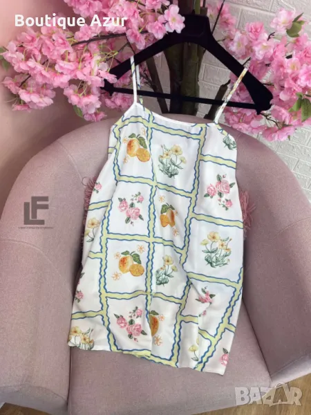 Кройка: Кройката е свободна, права с уникален принт и коригиращи се презрамки и ластик на гърба