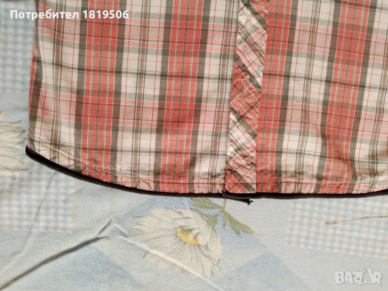 -ризката е от много тънък памучен плат, на бяло, тъмно розово и сиво каре,малко джобче , спортно-елегантна, размери:дължина-60см, ширина на рамене-39см, гръдба обиколка-88см