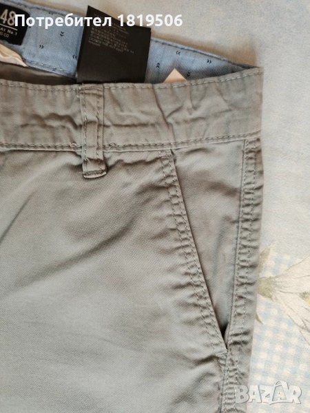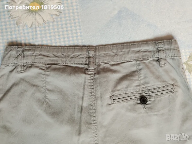 -панталончето от тънък памучен плат, светло сив син цвят и два вътрени джоба,на колана има ластика и копче за корекция на талията, размери:дължина-54см, обиколка на талия-72см, обиколка на ханш-94см