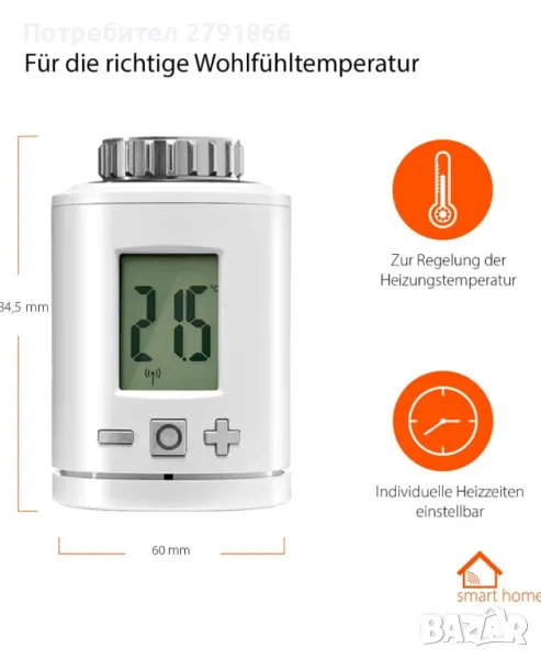 - Индивидуална комфортна температура – задайте индивидуално време за отопление и задайте комфортна температура за всяка стая – управлявайте радиаторите си по всяко време и навсякъде чрез приложение