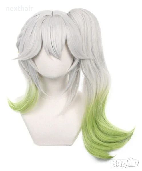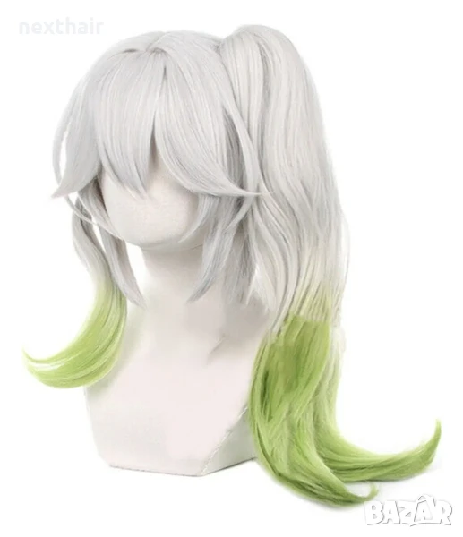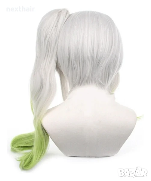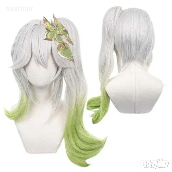 Аниме косплей бяла перука Nahida Genshin Impact с подвижна опашка и плитка → Обява 50332024