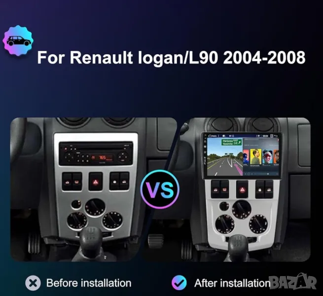 Мултимедия за Dacia Logan 1 L90, Logan, 04-10, Навигация, Android, Renault, DACIA, 2 DIN, двоен дин