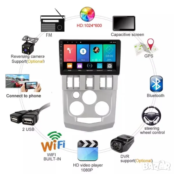 Wi-Fi интернет, новият Андроид, Bluetooth за разговори и музика, USB входове за флашка и зареждане на устройства, GPS навигация, теми за вид на меню, еквалайзер за настройка на звука, бърза реална RAM памет от ново поколение. ТОП дизайн!