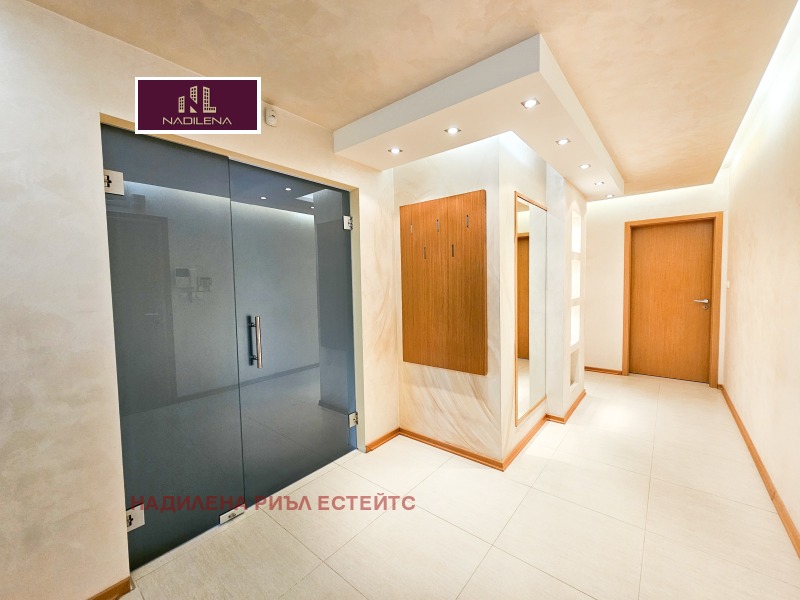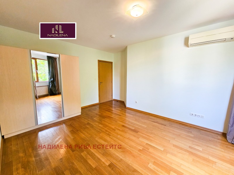 ГЛЕДКА КЪМ ВИТОША! ДО ПАРК! Надилена риъл естейтс предлага под наем представителен апартамент с площ от 176кв.м., ет.3/от 7, отопление-ТЕЦ, с асансьор, СОТ, видеодомофон. Намира се в непосрествена близост до ул. Якубица, НПМГ Акад. Любомир Чакалов', магазини, заведения, на минути от метростанция Джеймс Баучер, спирки на градски транпорт. Сградата е нова, с охрана, контролиран достъп. Апартаментът е със следното вътрешно разположение: просторно входно антре с портманто, тоалетна за гости с мокро, южен хол с камина, трапезария, вградена кухня с всички ел.уреди, излаз на балкон-с гледка към планината. По коридор се отива към родителска спалня със собствена баня с тоалетна(вана), 2 спални, 2-ра баня с тоалетна(душ кабина), гардеробна. От спалните се излиза на общ балкон. Настилката в стаите е естествен паркет, коридор-гранитогрес. Навсякъде има поставени хубави осветителни тела и аксесоари, климатици, щори, красиви пердета. Отдава се необзаведен. В наемната цена е включено и ползването на подземен гараж с врата. За повече информация и огледи се обръщайте към Надя Антова-088/9999 413, 0888/788 420, Елена-0898/60 55 33, Васил-0899/18 35 80
