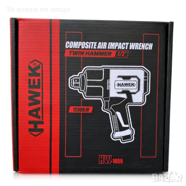 Пневматичен ударен гайковерт с къс шпиндел 1/2'' 1550Nm HAWEK