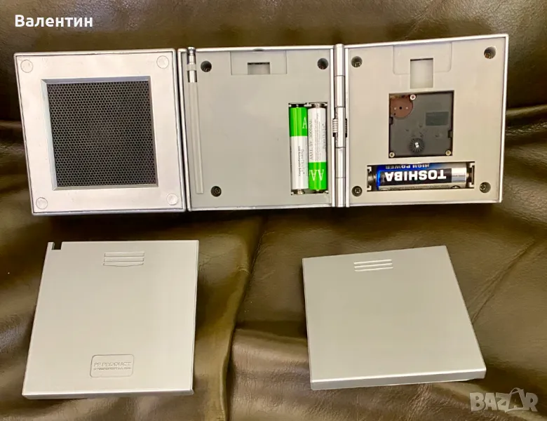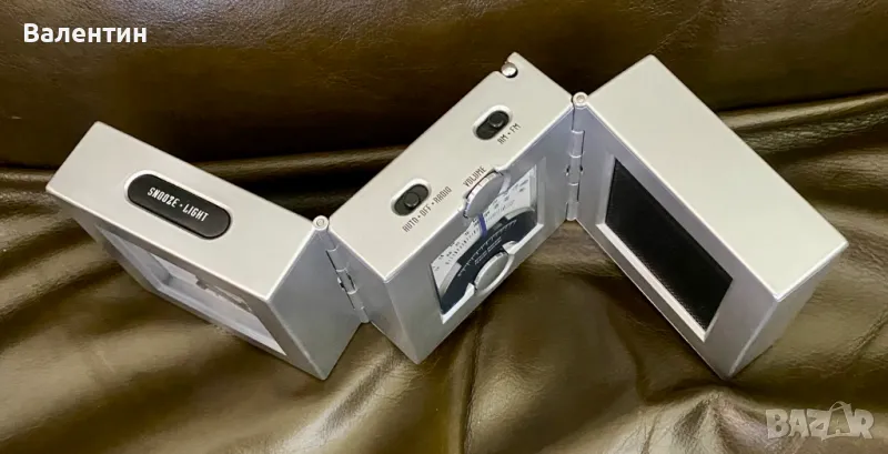 Винтидж радио-часовник-будилник& Интересен екземпляр от миналия век MARKSMAN CUBE 3. Няма следи от употреба. В оригинална опаковка. С документи. Оригинален дизайн на каросерията, може да се сгъва в различни конфигурации. Красиво осветление на часовника и радиото. Напълно функционален. Уверено приема всички станции, часовникът работи точно. Часовникът се захранва с 1 батерия тип AA, радиото се захранва с две батерии тип AAA.