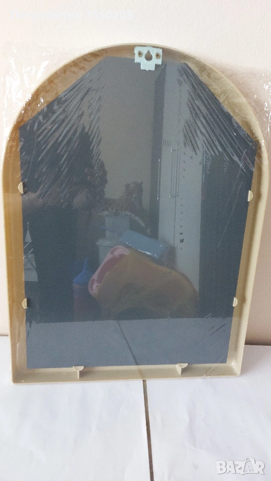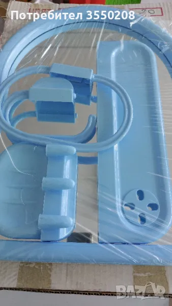 Огледало арка, ново с аксесоари за баня в кутия. останало от затворен магазин, в наличност синьо, цена 7 евро, бежаво, цена 10 евро, размер 49,5 см.