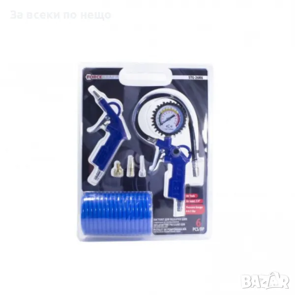 Пистолет за помпане на гуми с манометър в комплект с пистолет за продухване и маркуч ForceKraft