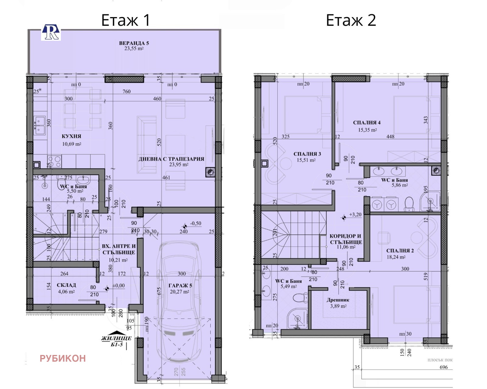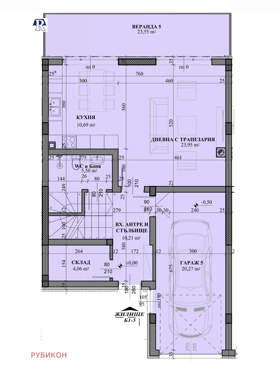 дневна с трапезария, кухня, баня с тоалетна, склад, гараж, веранда; етаж 2 (88,91 кв.м) :