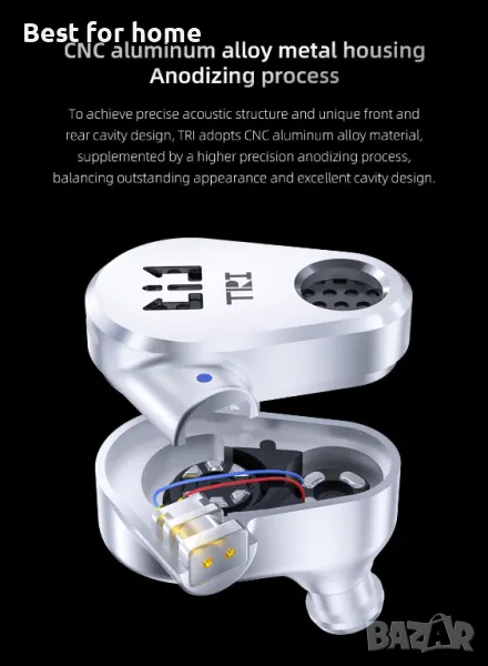 CNC обработка: За да се постигне прецизна акустична структура и уникален дизайн на предната и задната кухина, TRI използва материал от алуминиева сплав с CNC обработка, допълнен от процес на анодиране с по-висока прецизност, балансирайки изключителен външен вид и отличен дизайн на кухината.
