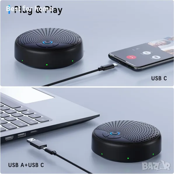 [Отлично качество на звука]: Оптимизация на гласа в реално време и възможности за намаляване на фоновия шум. USB конферентният високоговорител BALILA гарантира, че винаги чувате кристално ясно от другата страна, дори в шумна среда. Конферентният микрофон и високоговорител са проектирани да осигурят професионално качество на срещите, където и да сте. Те подобряват звука ви, така че другите хора да го чуват силно и ясно, гарантират, че няма да бъдат пропуснати детайли и произвеждат естествени и богати звуци с пълна дуплексна аудио поддръжка.