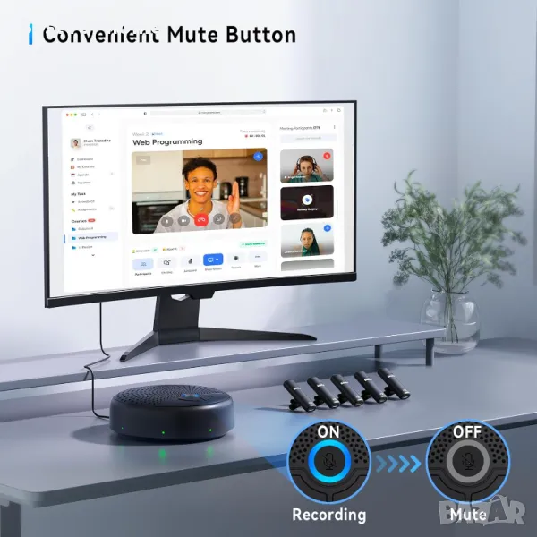 USB високоговорителят е съвместим с повечето платформи за конферентна връзка, като Zoom, Microsoft Teams, Skype for Business, Slack, Webex и други, така че можете да започнете срещата си незабавно.
