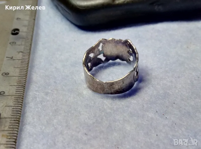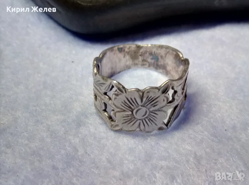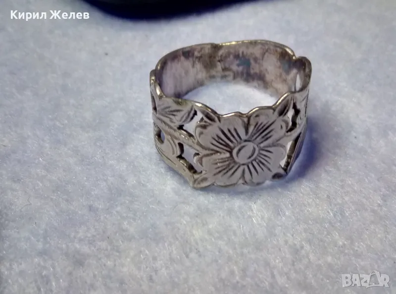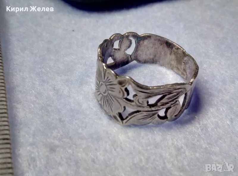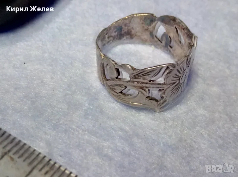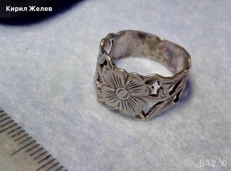 СТАРИНЕН РЪЧНО ФЛОРАЛНО ОРНАМЕНТИРАН СРЕБЪРЕН ПРЪСТЕН ВИСОКА ПРОБА СРЕБРО МАЙСТОРСКА РАБОТА 50066