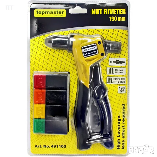 Нитачка за нит гайки Topmaster, подходяща за професионална употреба в монтажните дейности.