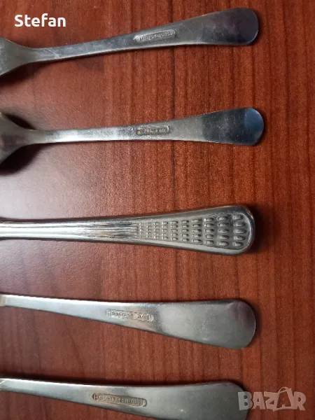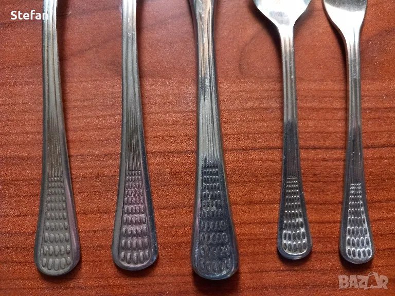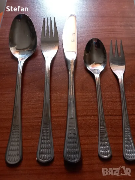 Стар /Неупотребяван/ сервиз за хранене от 80-те години на Германската фирма - ROSTFREI - Ножове за стек - 12 бр. + Вилици - 18.7см. - 14 бр. - Лъжици - 18.7см. - 14 бр. + Лъжички - 14.5см. - 14 бр. + Вилички - 14.5см. - 16 бр. ---- Общо - 70 бр. - 91 € за целия комплект. Цената е крайна.
