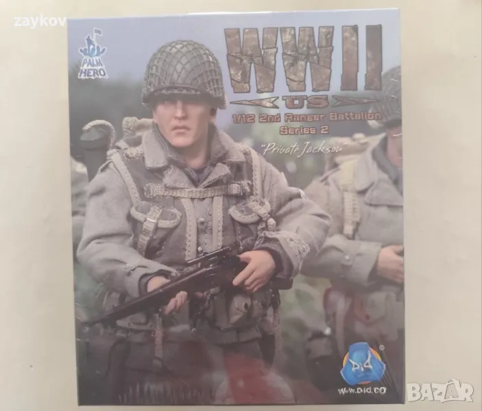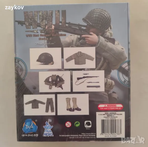 Втората световна война"Редник Джаксън - 2-ри батальон на рейнджърите на САЩ от Втората световна война - Серия 4 - в мащаб 1/6Един от войниците, търсещ „редник Райън“ .....Бери Пепър като редник Джаксън - (американският левичарски снайперист от Уест Форк, Тенеси) - в мащаб 1/6Продуктът е само за целите на историческото образование и не е предназначен да възхвалява, нито да експлоатира ужасите и зверствата на войната.Текст от DiD:Супер реалистична скулптура на глава Снайперска пушка M1903A4 Springfield с пълнителЖилетка за щурм на къси рейнджъри2 броя мерници за снайперска пушка с носачКама с ножницаВисулка с кръст на американската армияДлани, държащи пистолет за левичарски снайперист