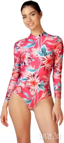 MF -Sea® Дамски бански костюм с дълъг ръкав Willy Fizzy, бански костюм с цип на гърба, плат от полиестер и еластан, UV защита UPF 50+, идеален за водни спортове, сърф, SUP.