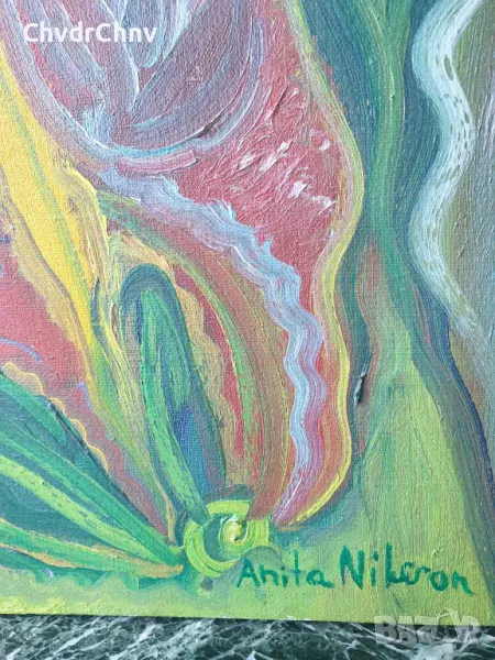 Картината е авторска, с подпис на художничката (Anita Nilsson-Billgren, родена 1942 г) от Швеция. На търгове, картините й се продават от около 200 евро нагоре, в зависимост от размер/сюжет/период.