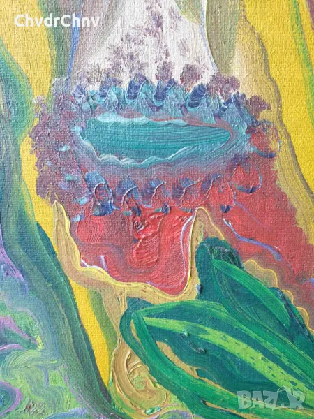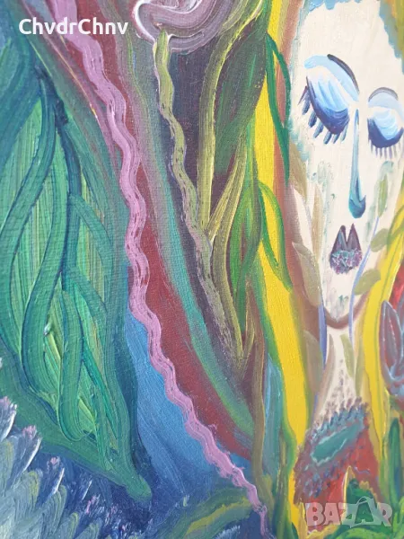 Стил наивизъм, ръчен рисунък, добър релеф на боите, масло върху платно, свежи цветове, в перфектно състояние.