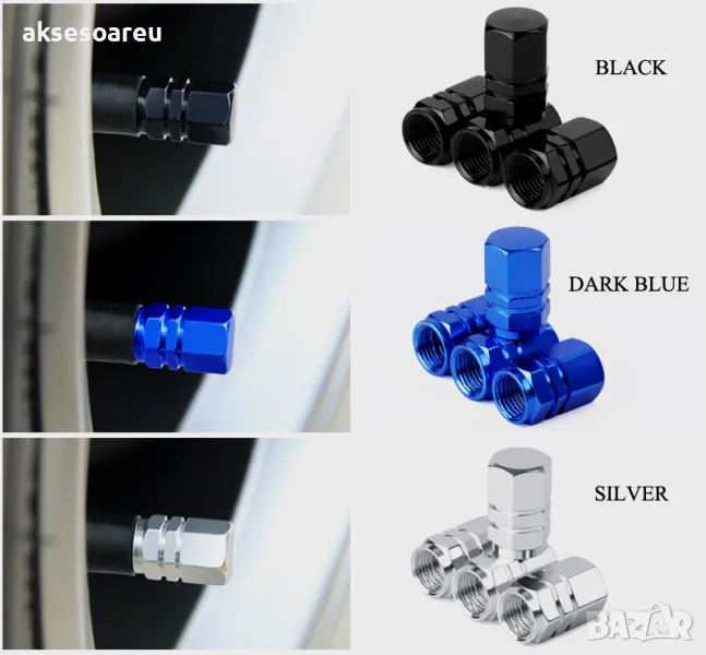 4 бр. алуминиеви цветни капачки за вентили на кола