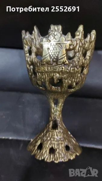 Арт изделие- JERUSALEM. Масивно, ажурно с инкрустации и надписи. Височина- 11см. Диаметър на основата- 5см. Диаметър на горната част- 7см.