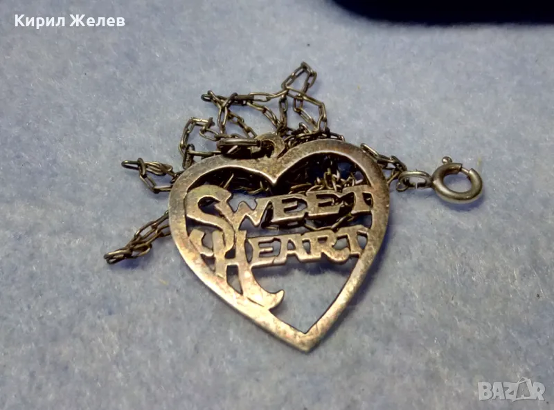 SWEET HEART СРЕБЪРЕН МЕДАЛЬОН СЪРЧИЦЕ СТЕРЛИНГОВО СРЕБРО 925 STER. AM АНГЛИЯс СРЕБЪРНА ВЕРИЖКА 25108