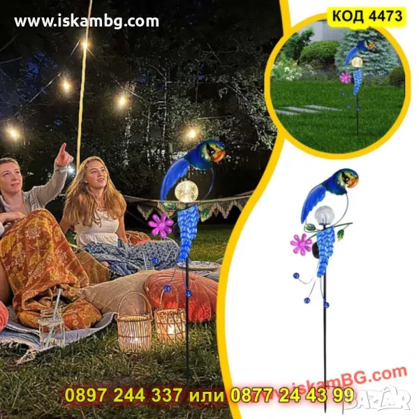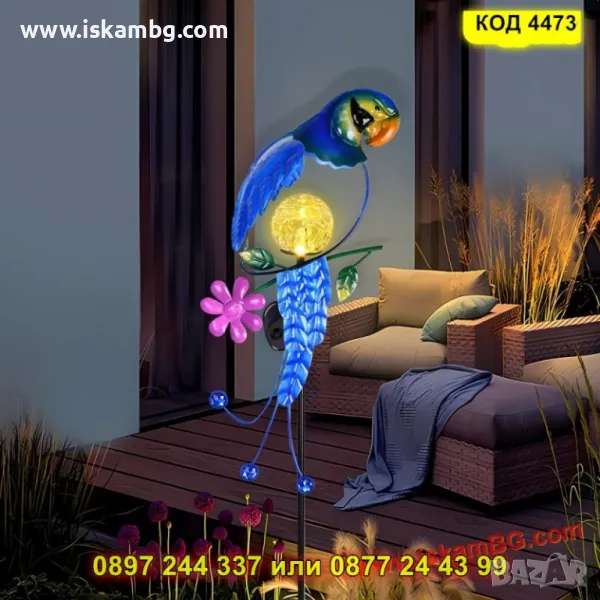 Превърнете градината си в екзотичен оазис с декоративната соларна лампа "Папагал" – перфектна комбинация от елегантен дизайн и функционално осветление. Тази лампа не е просто източник на светлина, а истинско произведение на изкуството, което ще придаде уникален чар на двора, алеята или терасата ви.
