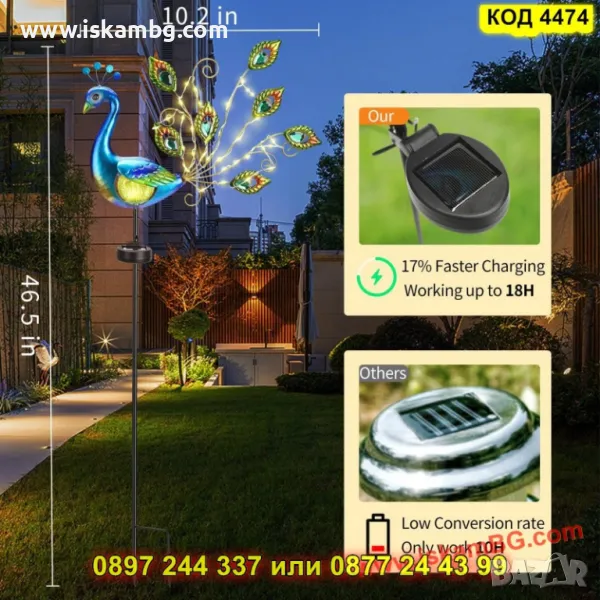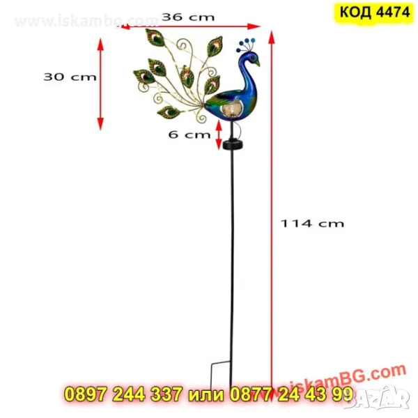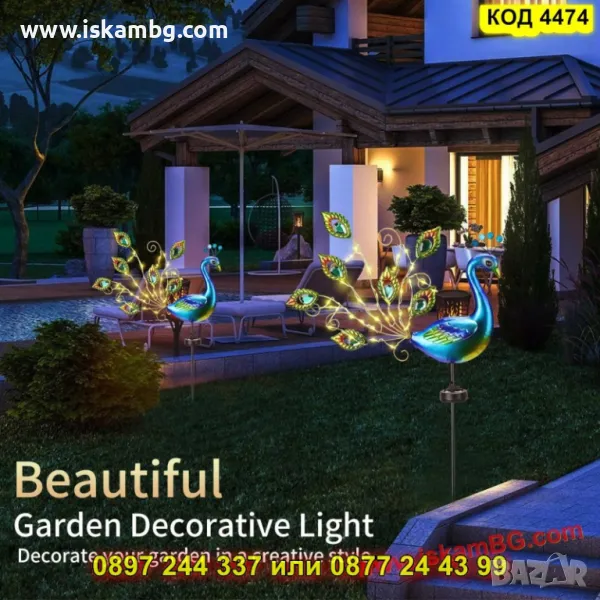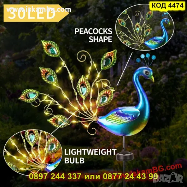 Форма: Декоративен паун с опашка от 30 LED светлини