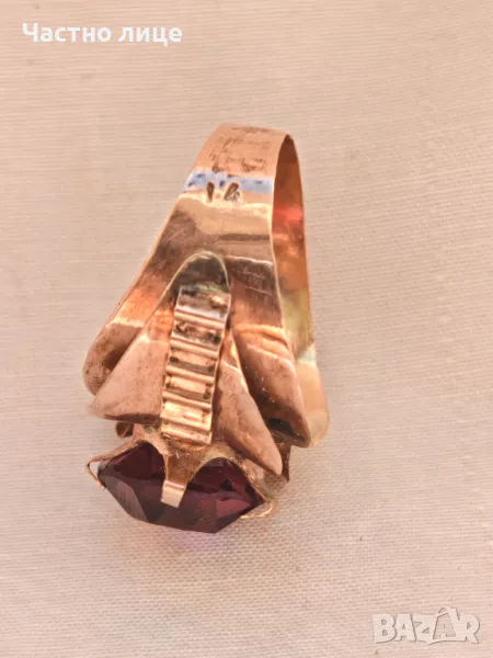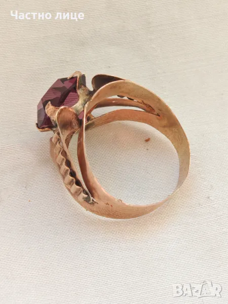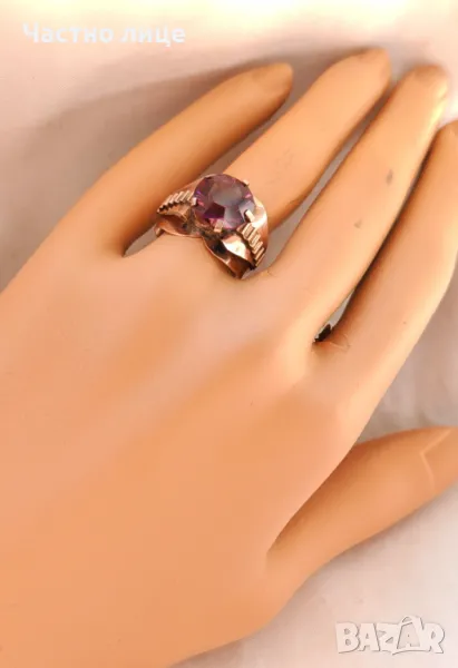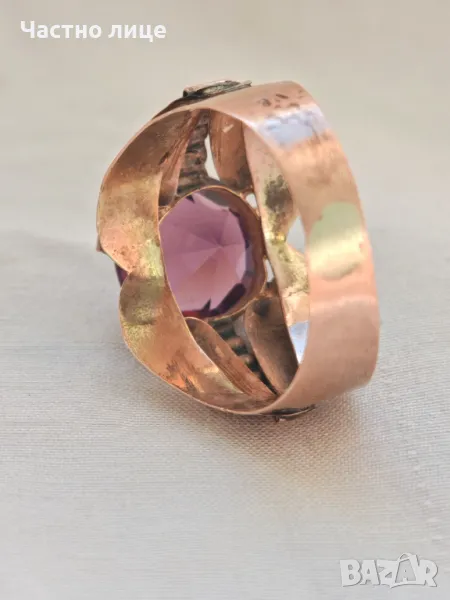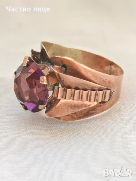 Старинен Дълбоко Позлатен Ювелирен Пръстен с Аметист 1930те г → Обява 50337796