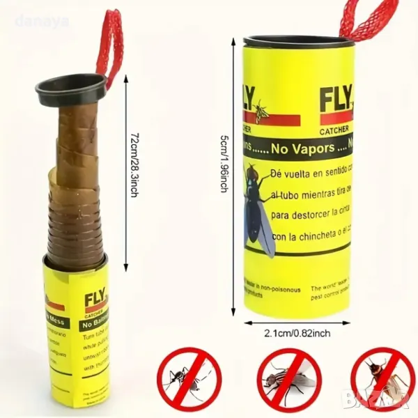 Капан за мухи, лепяща ролка за мухи, борба с насекомите – практично и ефективно решение за дома, градината, терасата или селскостопански помещения. Всяка лепяща лента улавя мухи, комари и други летящи насекоми без нужда от химикали. Напълно безопасен метод, без мирис и токсини.