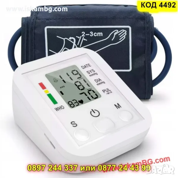 Голям LCD дисплей с индикации за високо и ниско кръвно налягане
