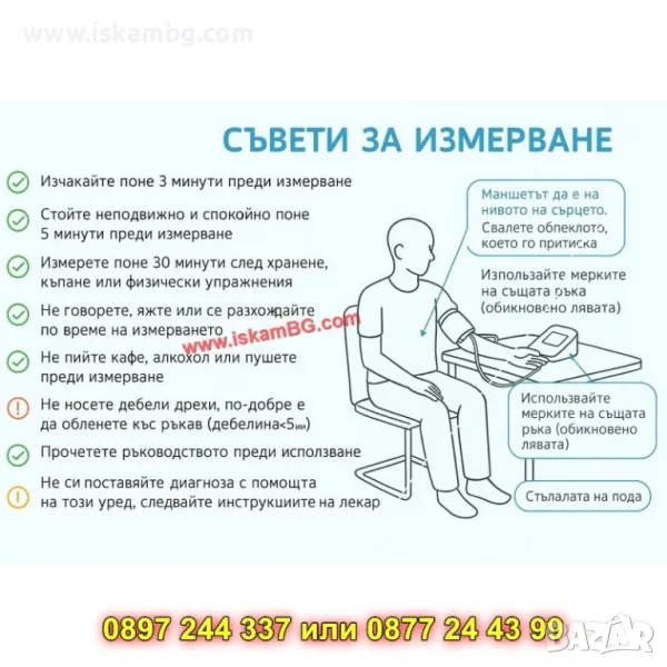Измерването става изключително лесно с един бутон „Старт/Стоп“ – маншетът се надува автоматично и след това бавно се изпуска, като в същото време апаратът изчислява и показва резултатите. Подходящ е за домашна употреба и проследяване на здравословното състояние всеки ден.