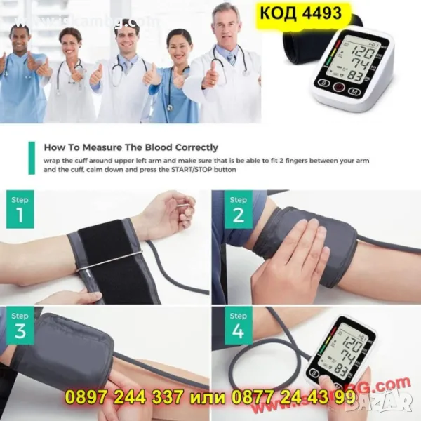 Натиснете бутона за старт – апаратът автоматично ще се надуе и измери.
