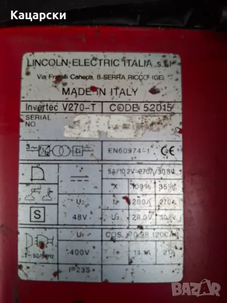 Трифазна инверторна машина LINCOLN Invertec V270 TP → Обява 50338879