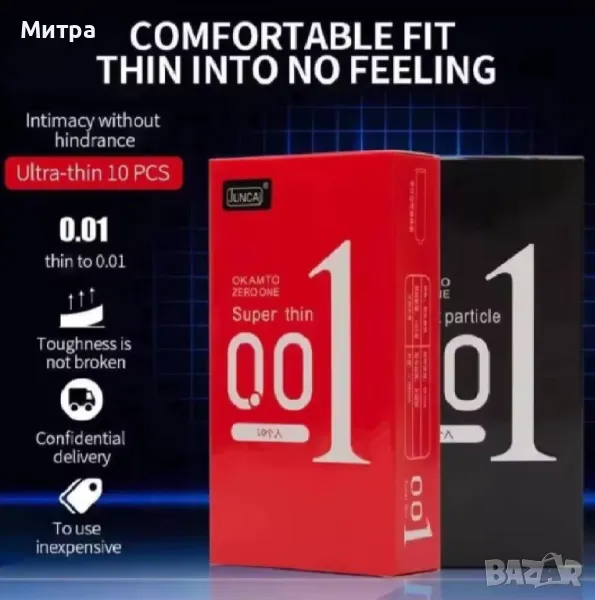 Презервативите 001 са 90% по тънки от обикновените презервативи.
