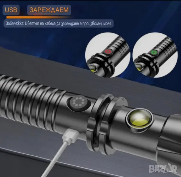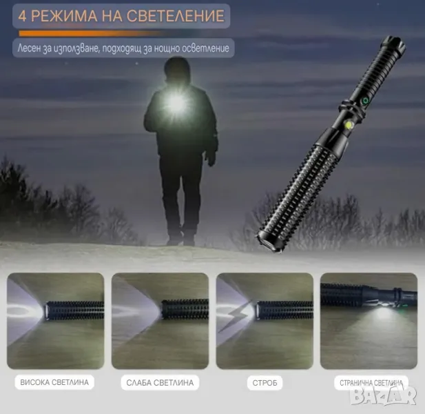 ABS/здрава пластмаса/ палка -фенер със странична лампа USB TapeC зареждане ,дължина 34.5см. /разгледайте снимките/ Всеки един продукт от раздел електроника е тестван за функционалност,а имате преглед ,тест при доставка 👍🏻Вижте и другите ми обяви за парфюми техника и Ала-бала!