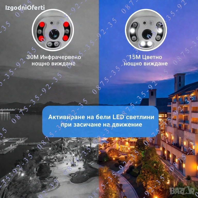 - Двоен източник на светлина (4 бр. бели White LED + 4 бр. инфрачервена светлина IR LED);