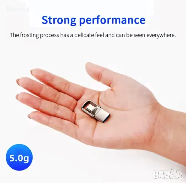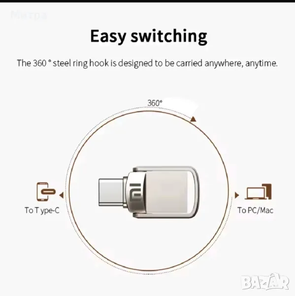 2в1- с два накрайника с USB- тип C 3.1 за телефон и стандартен USB-A 3.0 за всички други устройства с USB порт-телевизор, компютър, таблет...OTG - не е необходим адаптор, директно се включва в телефон. Подарък - Ключодържател.Водоустойчив и издръжлив тежи само 5 гр.