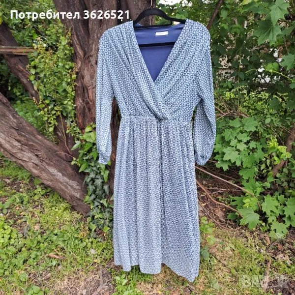 Дълга ефирна и елегантна рокля Reserved, размер L. Дължина до прасеца. Носена e, но е в добро състояние, видно от етикетите, които сазапазени и четливи. Лично предаване за София или доставка за сметка на получателя.