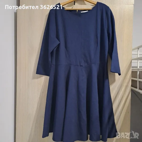 Елегантна рокля Closet curves, London размeр UK 26. 73 % вискоза. Материята е тежка и не пидчертава допълнително извивките. Дължина до коляното. 3/4 ръкав. Роклята е носена, но е запазена, видно от снимките и запазените и четливи етилети. Лично предаване за София или доставка за сметка на купувача.