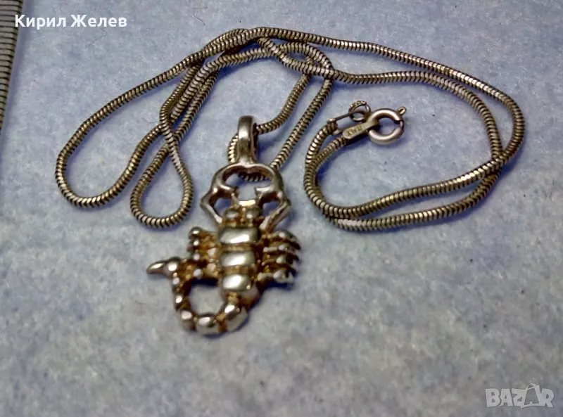 ЗОДИЯ СКОРПИОН ФИГУРАЛЕН СРЕБЪРЕН МЕДАЛЬОН с ФИНА СРЕБЪРНА ВЕРИЖКА СРЕБРО 925 ITALY 49834