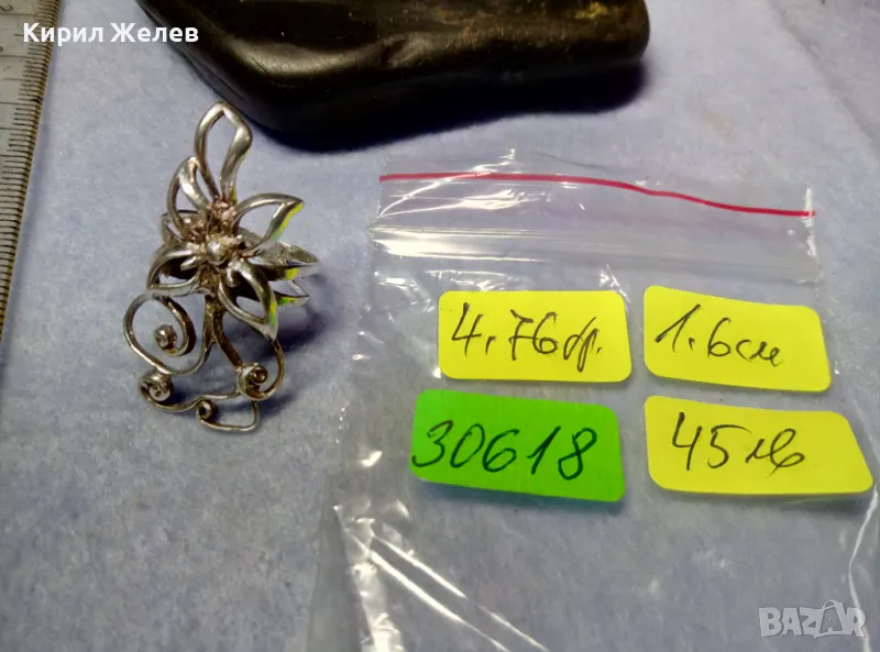 Пускам голяма СЕРИЯ от майсторска ръчна изработка старинни и нови СРЕБЪРНИ БИЖУТА - пръстени, обеци, медальони, гривни, ланци, колиета, брошки - някои са инкрустирани със скъпоценни или полускъпоценни камъни. Всичките са ТЕСТВАНИ ПРОФЕСИОНАЛНО върху лидийски камък с пробер - киселина за сребро, като особено по-старите, ръчно изработени и без маркировка които са, е заснето и резултата на камъка - яркочервеният цвят при натъркване и капване на киселината показва, че са от масивно СРЕБРО ВИСОКА ПРОБА. Има и накити от САЧАН /нископробна сребърна сплав, с която са работели старите майстори - куюмджии от периода на ВЪЗРАЖДАНЕТО и края на 19-ти век/, мед, бронз и благородна стомана с позлата или посребряване. Снимките ги ОНАГЛЕДЯВАТ! Имам НАД 27000 обяви в профила си - За ВСЕКИ по НЕЩО...! Изпращам по Еконт или Спиди с опция Преглед/Тест и отстъпка-транспорт.