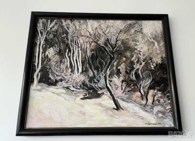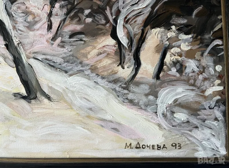 1. Голяма картина маслени бои - “ГОРА”, М.Дочева, 1993 г.,; размери с рамката - 78/66 см.; цена 250 евро.